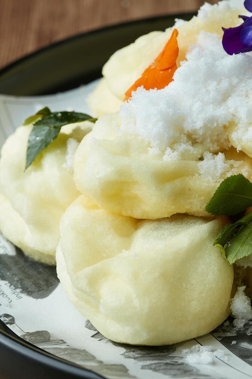 甭管之前吃了多少硬菜,最后端上这雪团团,男女老少都得再动筷儿,蘸点白糖咬开,豆沙香混着蛋清的酥,甜得直“挠心”。