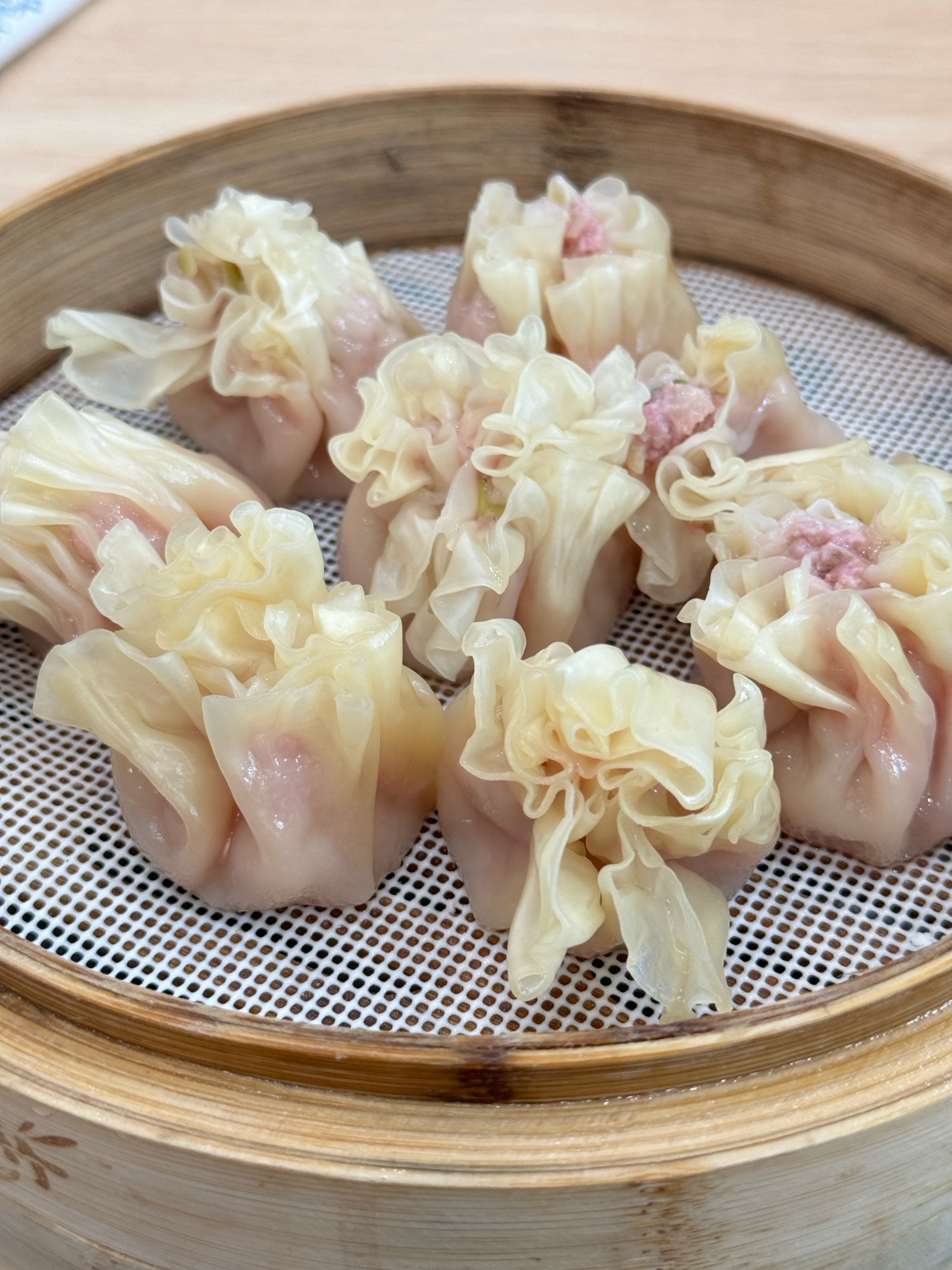 牛腰窝、紫盖、三叉肉剁碎,清水浸煨成松散水馅,蒸后形似木鱼,汤汁不漏,外皮透亮筋道,内里嫩到抿嘴即化。