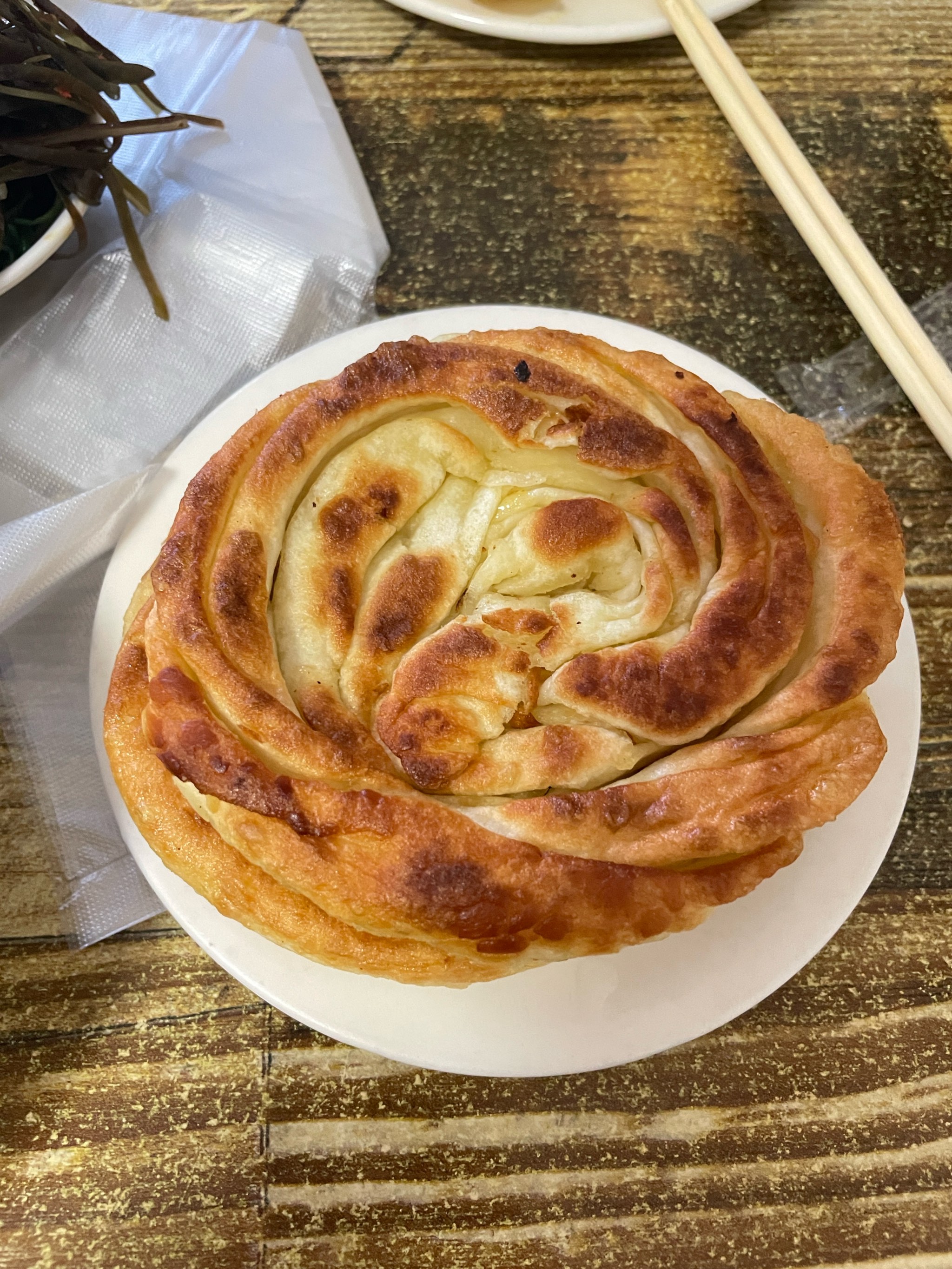 仍守着半烫面、牛油煎的古法,皮儿薄得透光,馅儿足得爆汁,一口下去满嘴油香,让人直咂摸“这味儿,真中!”