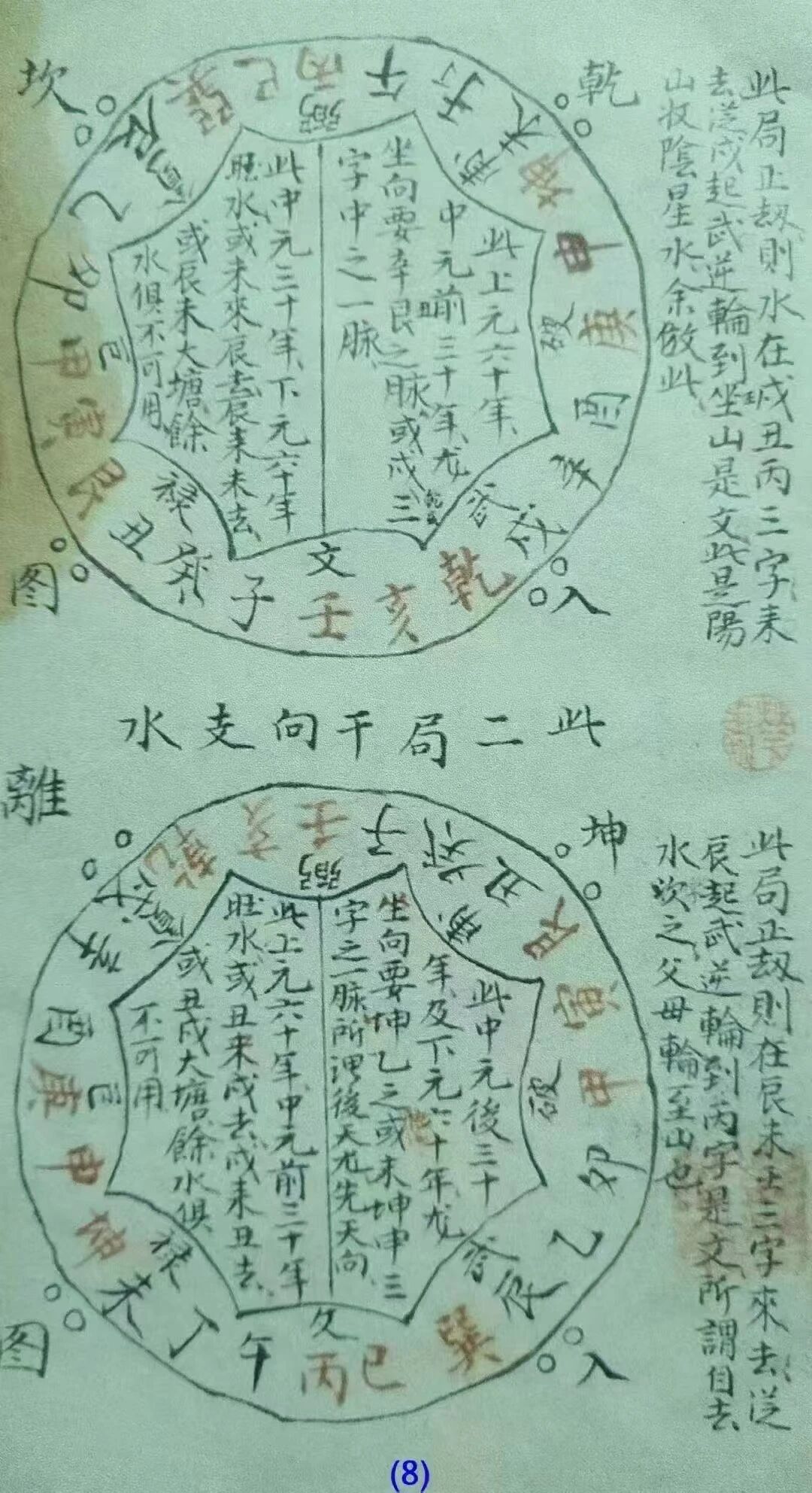 全书以 “手绘罗盘图 + 朱笔批注 + 七言口诀” 的手抄体例,浓缩 “先辨九宫气,再施颠倒劫” 等实操要点,完整保留 “此图传于得人,勿示轻慢者” 的传法题跋。需特别厘清的是,典籍所载 “颠倒打劫” 属堪舆学理气调局的正统技法,与现实中借 “风水消灾” 实施诈骗的行为有本质区别 —— 前者以 “乘气纳福” 为核心,依托严谨的九宫数理与气脉理论;后者则利用迷信心理设局,实为触犯法律的犯罪行径。对研究杨公古法的传承脉络、纠正后世风水术的异化偏差,以及解读堪舆学 “理气调局” 的科学内核,均具不可替代的价值,堪称连接郭杨曾玄窍古法与现代堪舆实践的珍贵纽带。