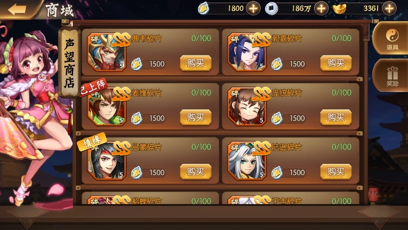 商店与副本:精准兑换,不浪费资源每日商铺需重点获取 “名将令、军令”(必拿)、“进阶单”(低氪玩家优先选 100/375 档位,高氪可全拿)、“挑战令”(前 7 个必买);荆州副本建议每日刷新,500 元宝以内的进阶单、名将令、军令,以及 14 元宝的挑战令可优先兑换,前期暂不买铜币(后期才会出现铜币缺口)。此外,“锦囊系统” 需提前铺垫:优先买紫色锦囊(后期缺口极大,前期满囤),橙色锦囊优先升张飞、马超、典韦,红色锦囊务必先拉满曹操,再考虑赵云、关羽 —— 曹操的辅助能力对前期阵容至关重要。