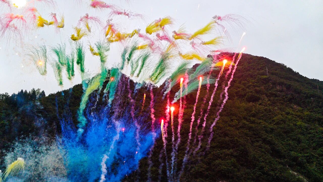 傍晚,展地蜡梅谷上演了烟花秀,这次没有蔡大师更没有炸山,但看起来很美。因为夜空中舞动着的璀璨光影,与画布上的艳彩艺术相映成辉,在蜡梅谷静谧的夜色中,《永生主义》画展开幕日以及那些在画布上跳着舞的色彩也进入了静默程序,等待着朝阳的召唤。