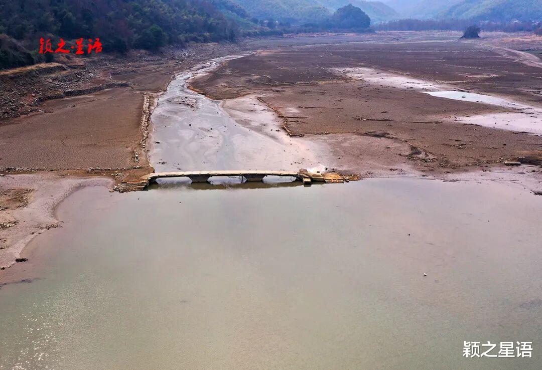 近几个月雨水较少,水库的水位继续下降,梁辉水库长期淹没于水下的里洪桥,重出水面。