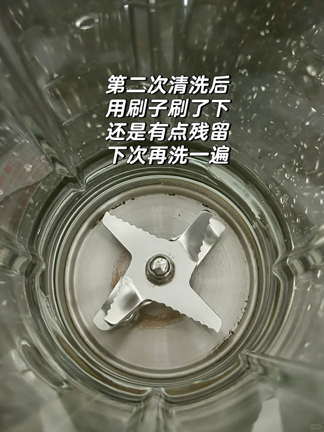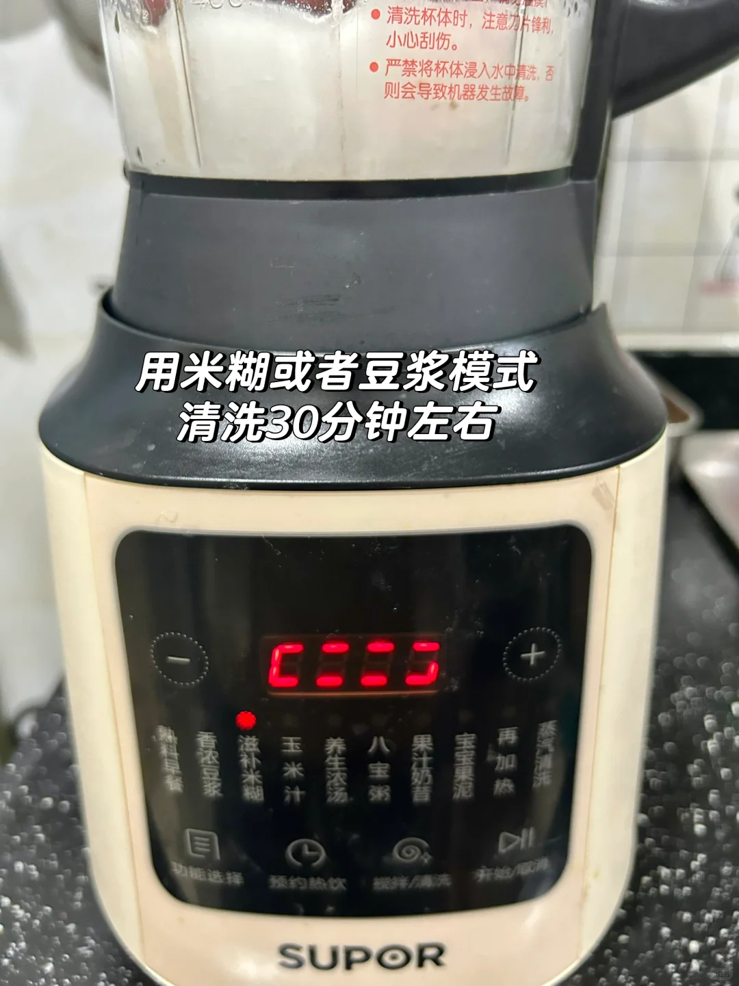 然后我们就可以开启破壁机的豆浆模式,大约30分钟左右就差不多了,这个时候你会发现刀头上以及底部的污渍被溶解掉,刀头还会变得很锋利。