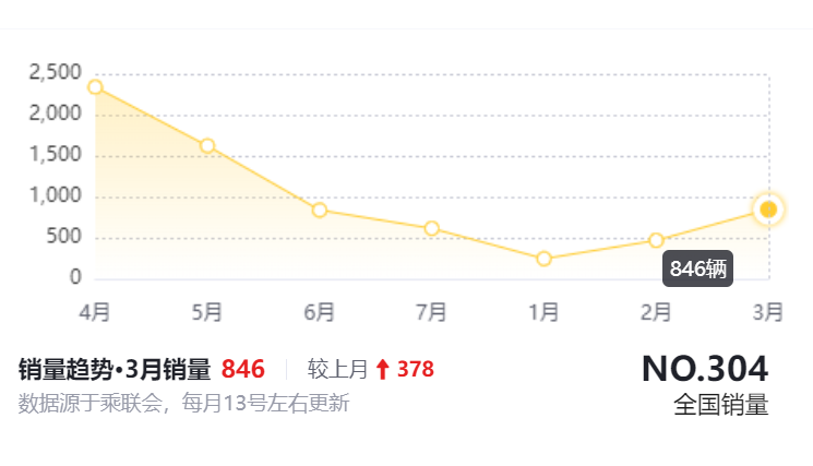 说这个日产奇骏自从换代换上了三缸机之后,销量就跟窜了稀似的一泻千里。看看最近的销量,1月份244、2月份468、3月份846......