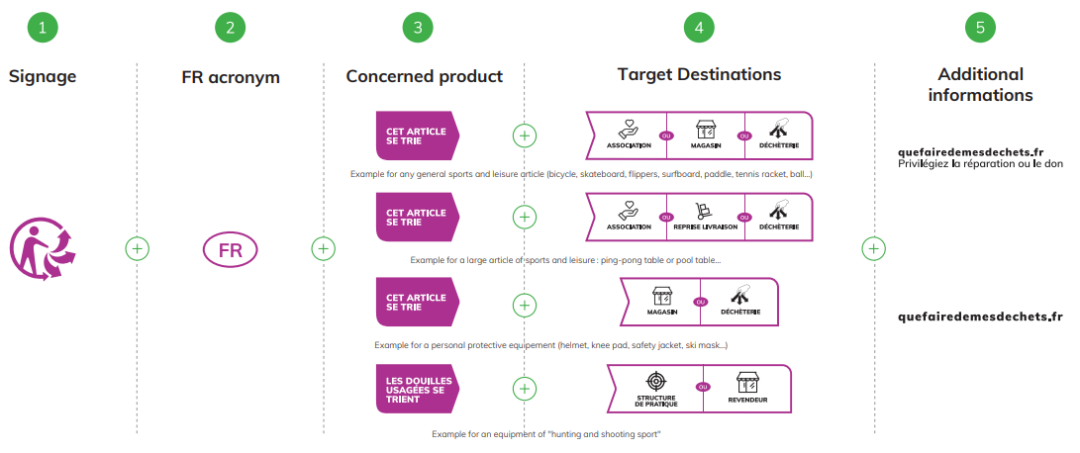 根据法国环境法(AGEC)第 L541-9-3条,任何受到法国生产者责任延伸(EPR)约束的产品(除饮料玻璃瓶外)均须贴有分类标签,告知消费者该产品使用的分类规则对象。这些产品包括包装、电子电器、电池及蓄电池、家具、玩具、DIY及园艺产品、纺织品等。