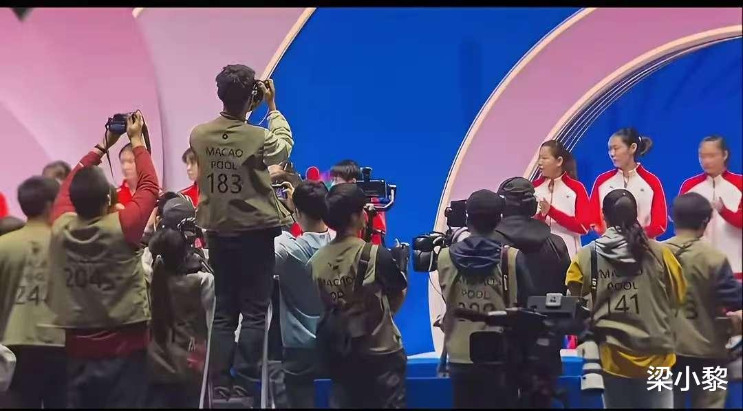 女团颁奖时,亚军的河北队被镜头团团围住,摄影师们争相记录。