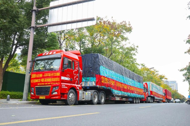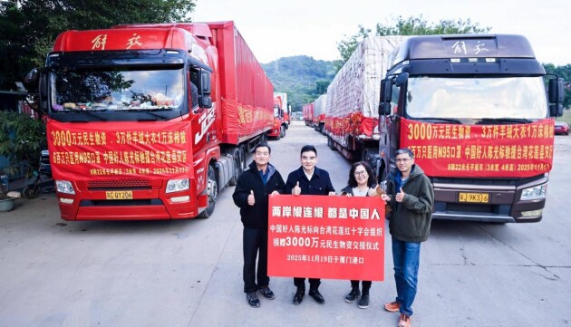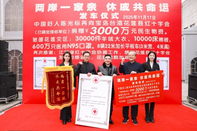 随着交接仪式落幕,8辆运输车缓缓驶向码头。货轮汽笛长鸣,载着3万套温暖、1万床安心与600万份守护,更载着两岸同胞的深情厚谊,朝着花莲的黎明启航。正如陈光标所言:“爱心无界,大义永恒。愿这份温暖融化寒冬,让两岸同胞的心贴得更近。”(丁虹)