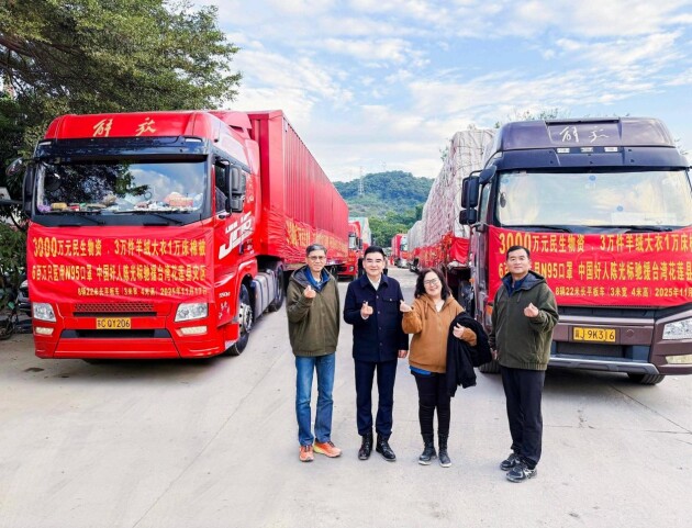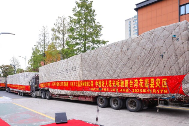 这批包含3万套羊绒大衣、1万床棉被及600万只医用N95口罩的救援物资,将定向驰援花莲地震灾区,为受灾民众送去御寒保障与防疫支持。