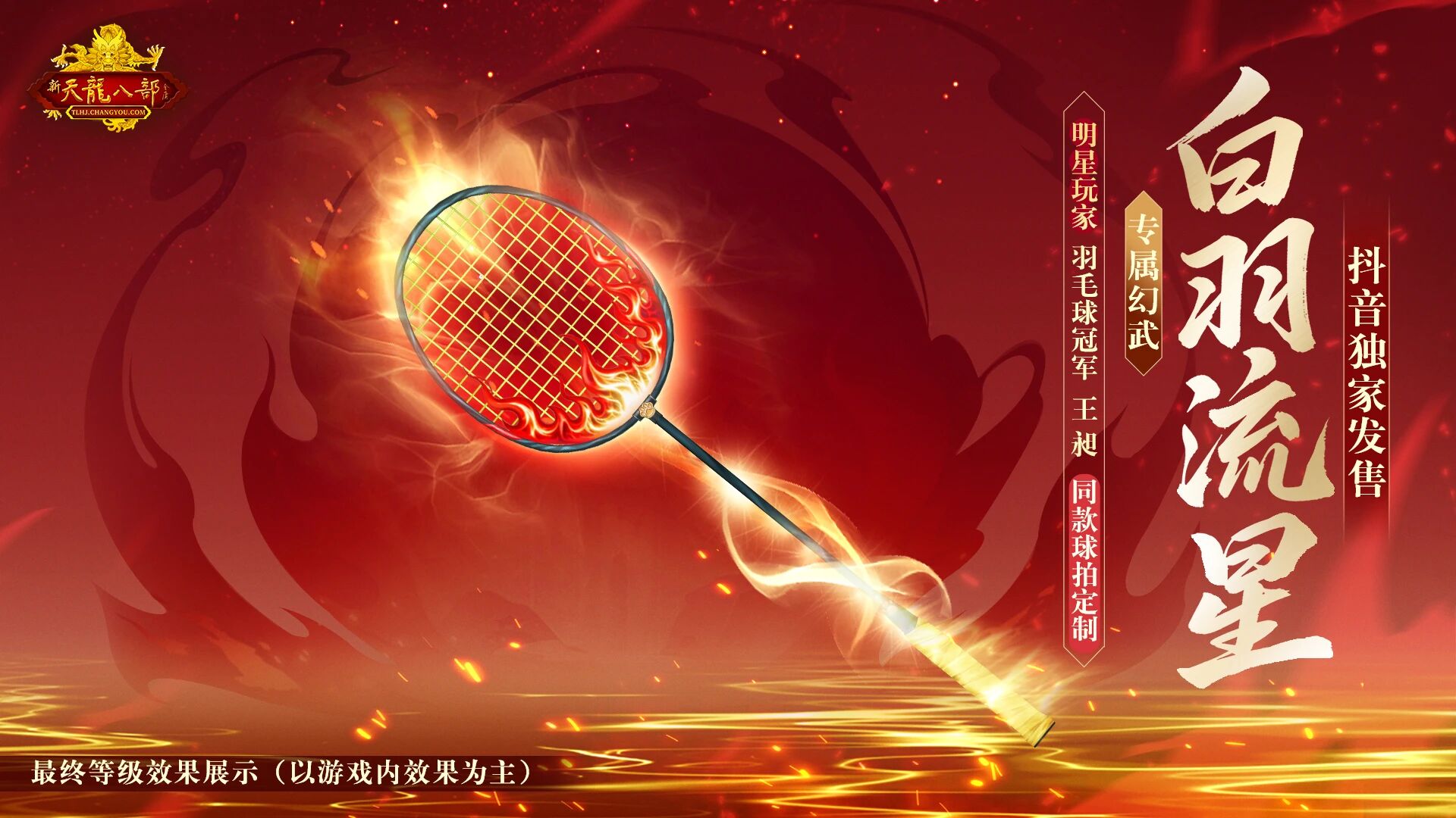 官方还为玩家特别定制了王昶球拍同款的全新幻饰武器:白羽流星, 设计上也精准还原他的常用羽毛球拍,这谁不想get冠军同款呢?