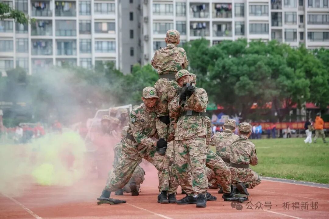 班级方阵各有锋芒,表演精彩纷呈:笃行班寓意脚踏实地、知行合一;状元班41颗心紧密相连,从知识的殿堂奔赴热血赛场;麒麟一班秉承“麒麟”之魂,将勇猛与灵气融入每一个步伐;扶摇二班尽显直上青云的壮志,誓以少年热血破浪前行;青云班红伞在手,化身侠客与文人,伞转书生意气,步踏少年雄心;国防班军容严整,步伐铿锵,展现坚强的意志与必胜的信念……
