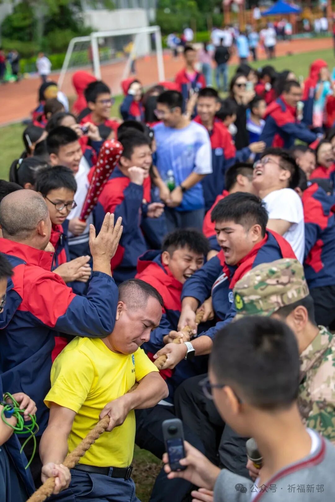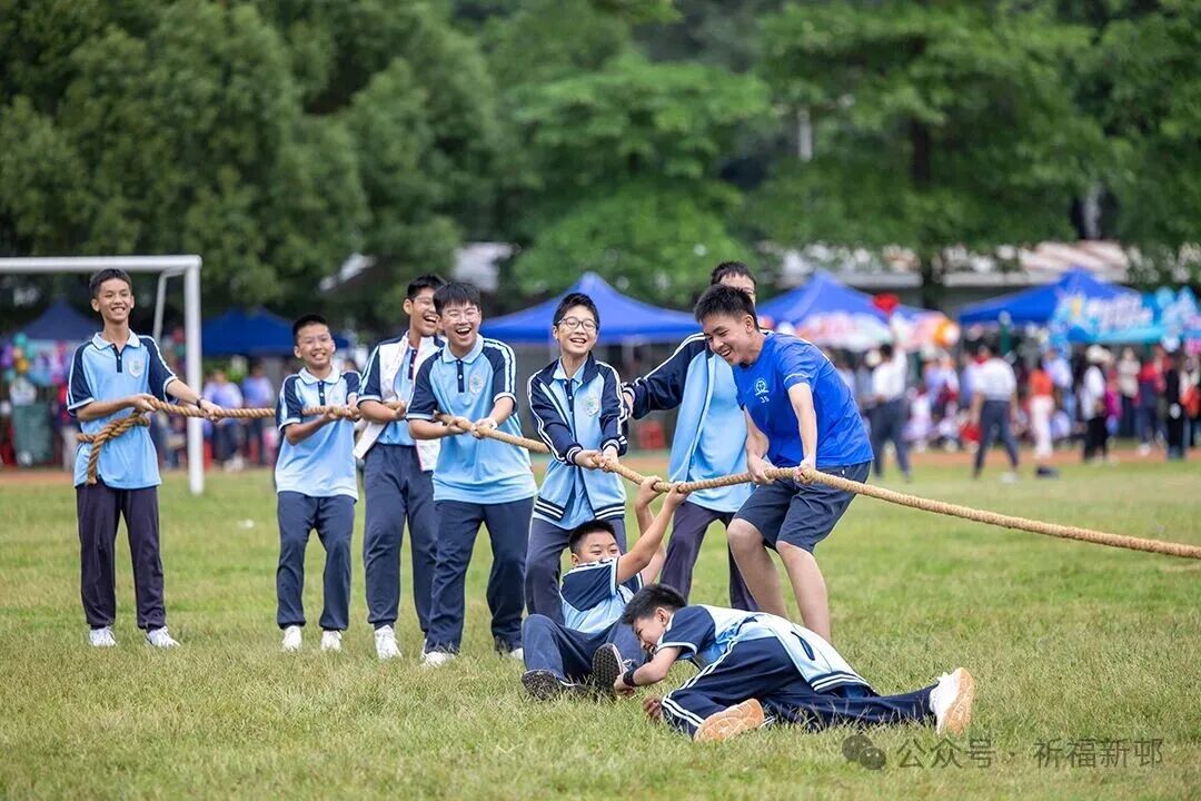 教师家长拔河赛更显激烈 —— 绳子两端,老师们咬牙发力,家长们青筋凸起,赛场边学生的呐喊声 “震耳欲聋”。