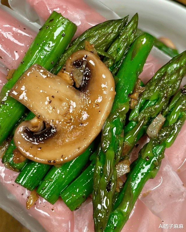 朋友们来我家做客,我每次都会做这道菜来招待他们。每次上桌都是秒光盘的节奏,大家都说好吃得停不下来!所以啊,如果你也想在家做一道简单又美味的家常菜,不妨试试这道口蘑扒芦笋吧!