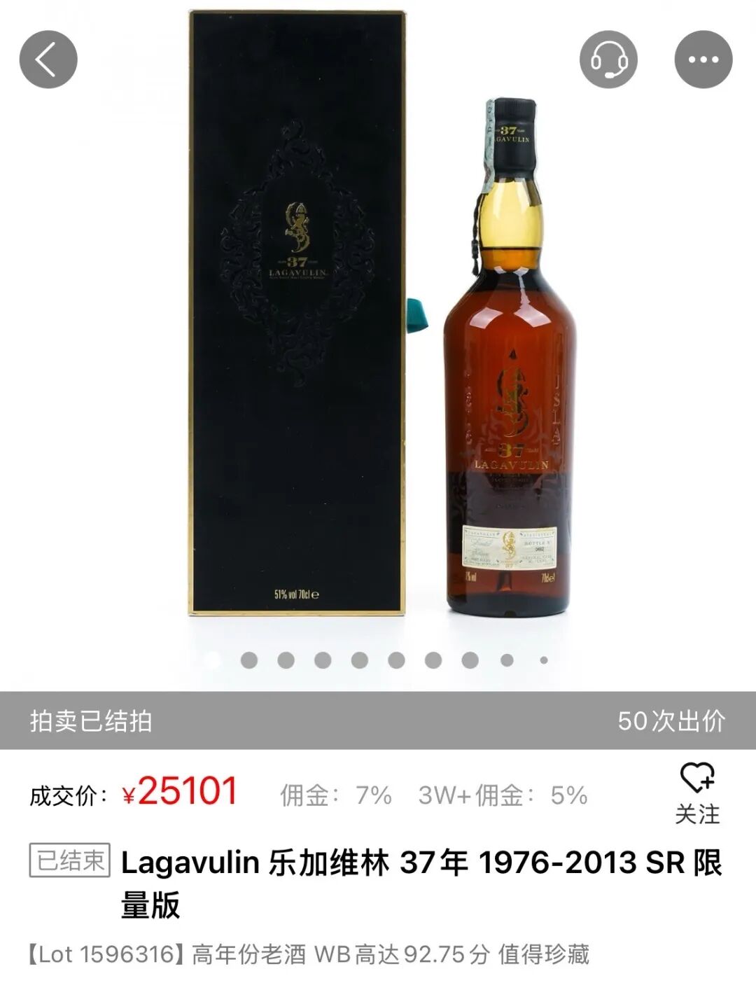 另一款苏威来自乐加维林37年高年份威士忌,帝亚吉欧发行的古老乐加维林官方装瓶版本之一。历史出价至¥39800,本期仅以¥25101成功拍出,跌幅为37%,凸显了市场对其短期前景的悲观态度。