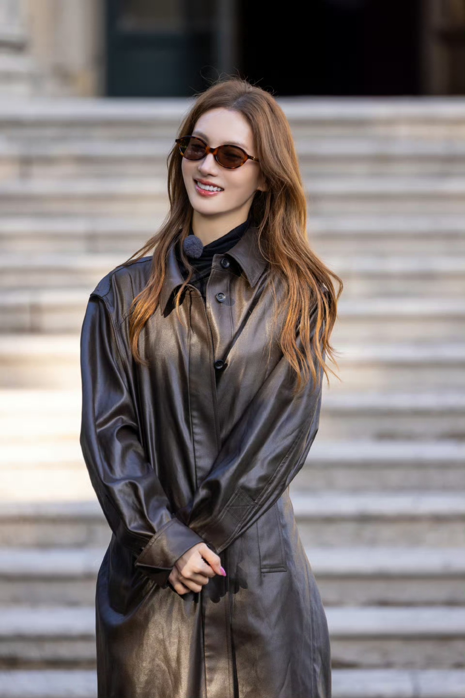 金晨今日份营业美照,一身衣皮长筒靴穿搭,又酷又美