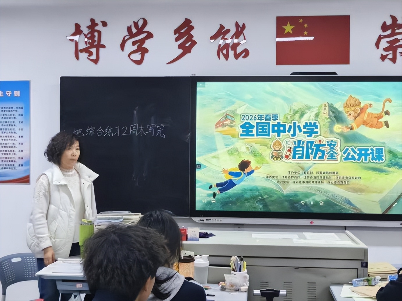 师生共同重温全国中小学消防安全公开课核心内容,打破“消防知识离生活很远”的认知。