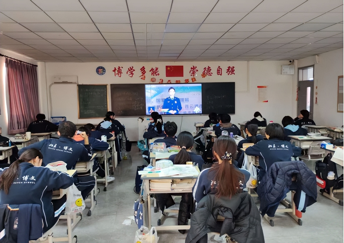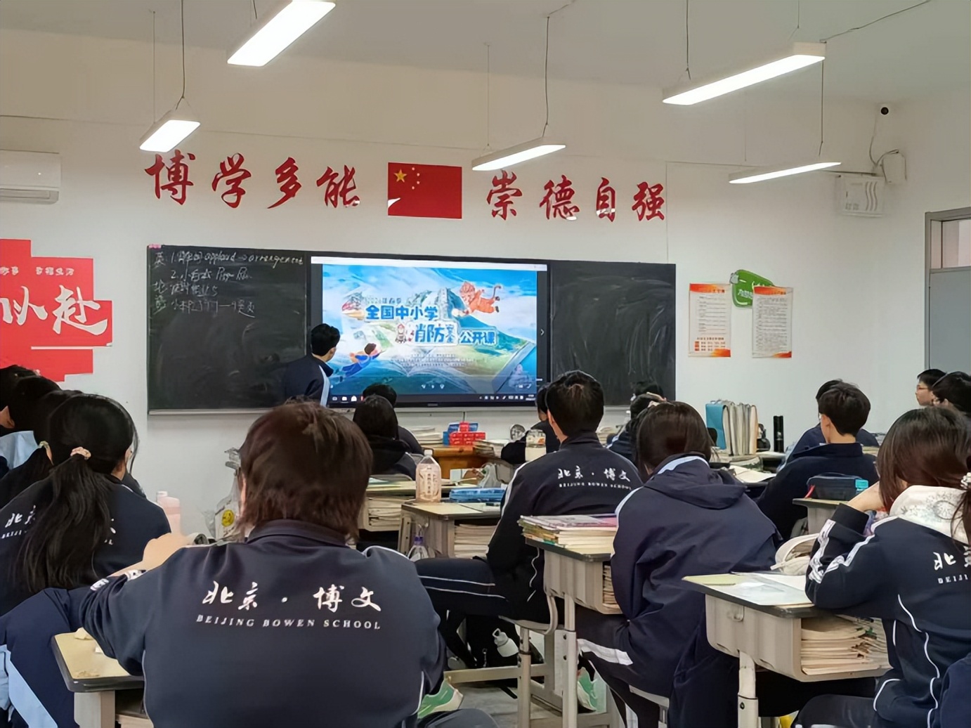 3月16日,北京市博文学校组织全体高中学生开展全国中小学消防安全公开课。