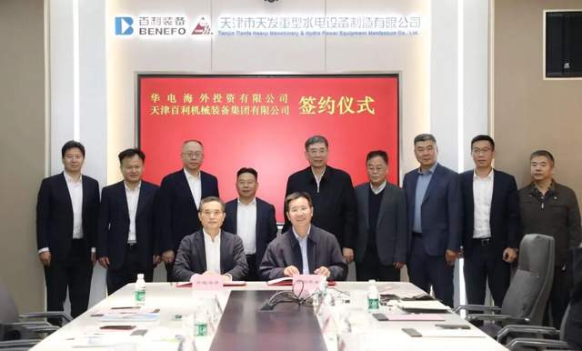 26、近日,中国华电集团海外投资有限公司党委书记、董事长仇甜根一行到访百利装备集团所属天津市天发重型水电设备制造有限公司,与百利装备集团党委书记、董事长吴杰军座谈交流并见证双方签署战略合作协议。百利装备集团党委副书记、总经理徐科华,华电海投公司党委委员、副总经理李远志代表双方签署协议。