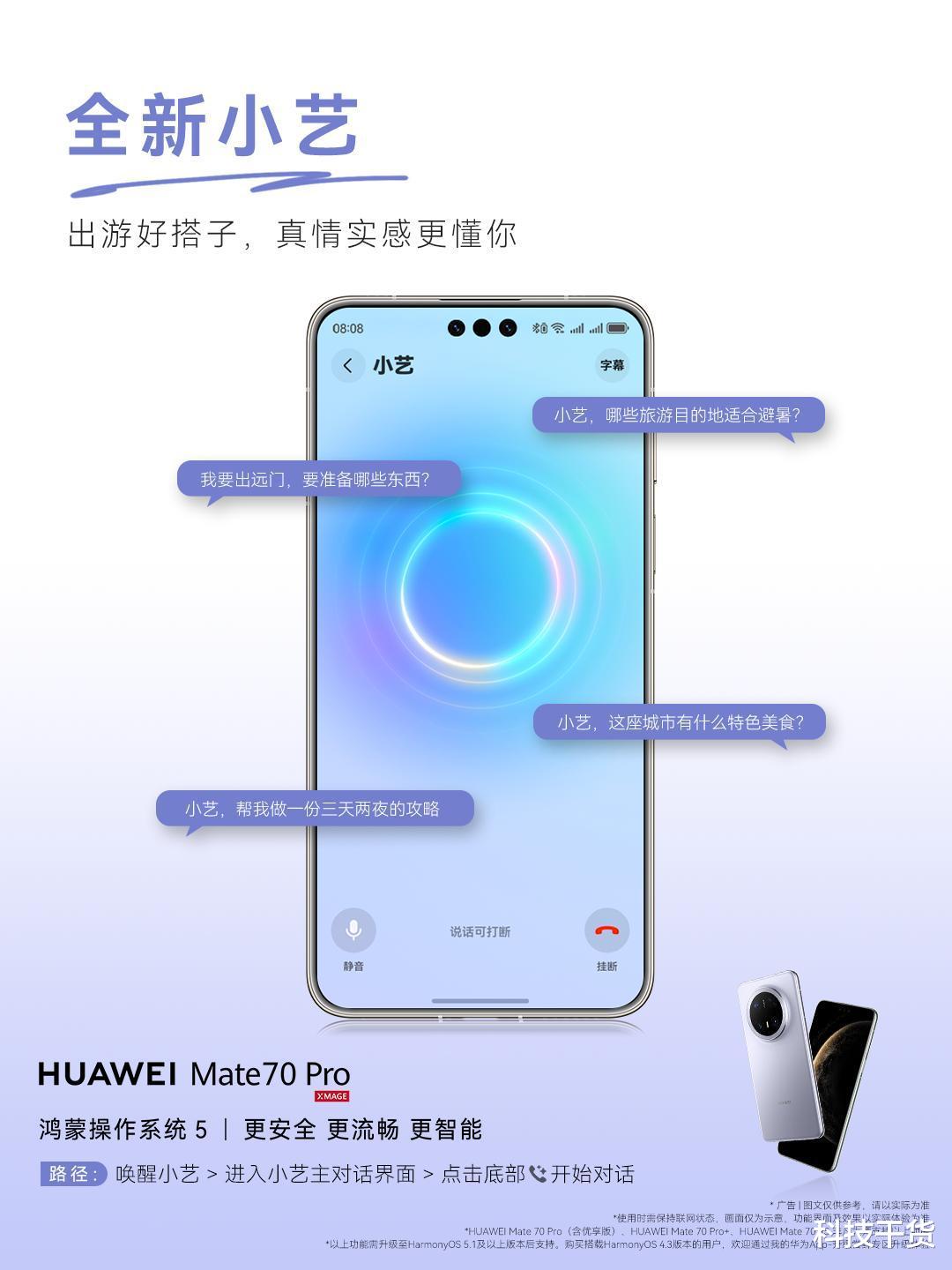 华为Mate 70 Pro+还搭载了越来越聪明的智能助手小艺,它不仅能实现更自然的人机对话,还能主动理解你的需求。例如你说“哪里好玩”,小艺能智能推荐周边景点、路线和票务信息;你表达“有点累了”,它也会及时给出温馨回应。基于语境与情绪的理解,让这种交互不再是冷冰冰的命令,而更像贴心的陪伴。