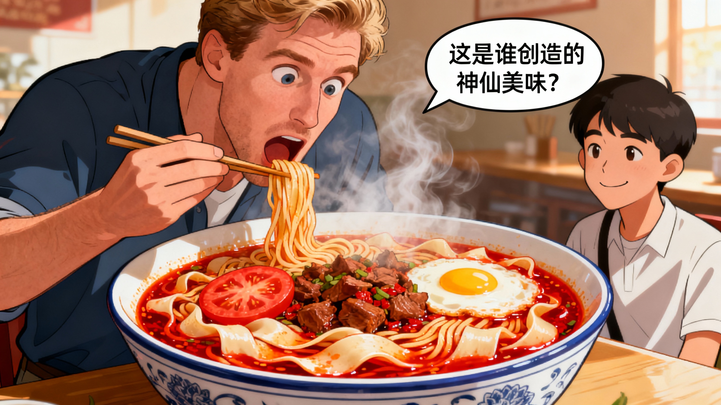 “一碗面条中究竟放了何物一位美国小伙子尝了一口便打算迁居中国,这算正常吗?”