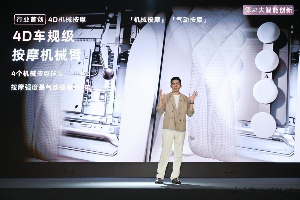 在保持价格优势的前提下,智己LS9在产品力层面也给到了十足的诚意和惊喜。身为全尺寸大六座SUV,空间肯定要符合用户预期,智己LS9拥有5279mm的车长、3160mm的轴距,三排座椅的横向、纵向空间都非常宽裕。而且智己LS9全球首搭4D机械按摩座椅,比常规气囊按摩力度大 7 倍,还能实现按、捏、揉、推等复合式按摩技法,堪称能移动的SPA按摩舱。