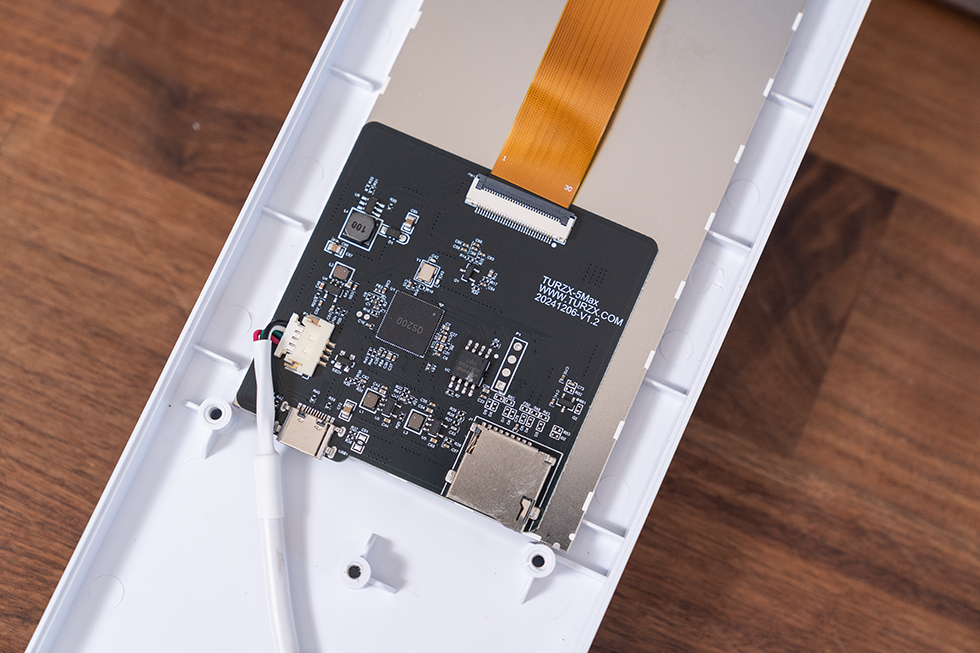 拆开外壳后可以看到内部的PCB驱动板来自图灵智显,预留了一个TF卡槽和TYPE-C插口,说明还有更大的可玩空间。