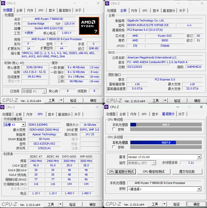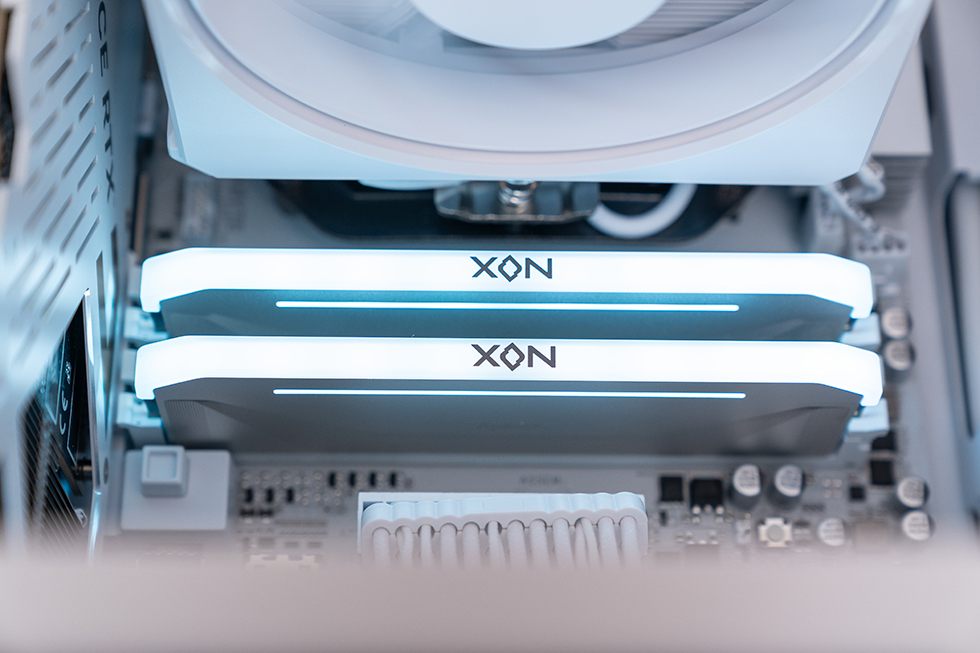 内存则选用了宇瞻全新的NOX RGB DDR5 内存,采用海力士原厂颗粒,单条容量16GB,支持Intel XMP3.0与AMD EXPO™单键超频技术,选择了AMD平台的黄金时序C28。开启XMP后,频率则为6000Mhz,时序 28-48-48-96 CR1,内部搭载PMIC(电源管理芯片),能有效管理电流,确保系统稳定高效运行。