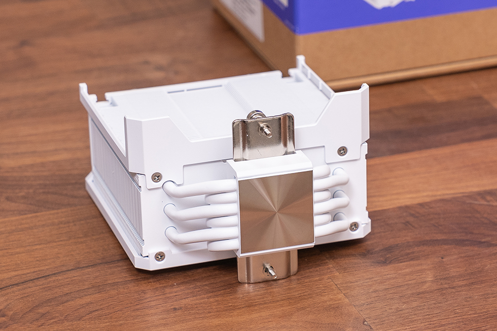 散热器塔体的表面均经过黑化处理,鳍片排布齐密规整,结合双排扣Fin+折Fin工艺实现高效导热;铜底座与六根6mm超导复合热管使用黑化喷油处理,质感细腻光滑,底座和热管的焊接紧实,热管部分还做了偏向避让设计,有效提高内存的安装兼容性。