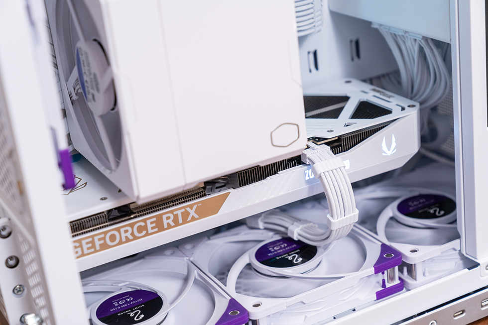 索泰 GeForce RTX 5070 Ti 16GB SOLID CORE OC WHITE显卡采用了 IceStorm 3.0 先进散热系统,搭配更大的散热鳍片面积和优化的风道设计,能够有效提升散热效率。此外,Blade Link 风扇设计,在提供强大风力的同时,还能降低风扇运转时产生的噪音,实现了散热与静音的较好平衡。