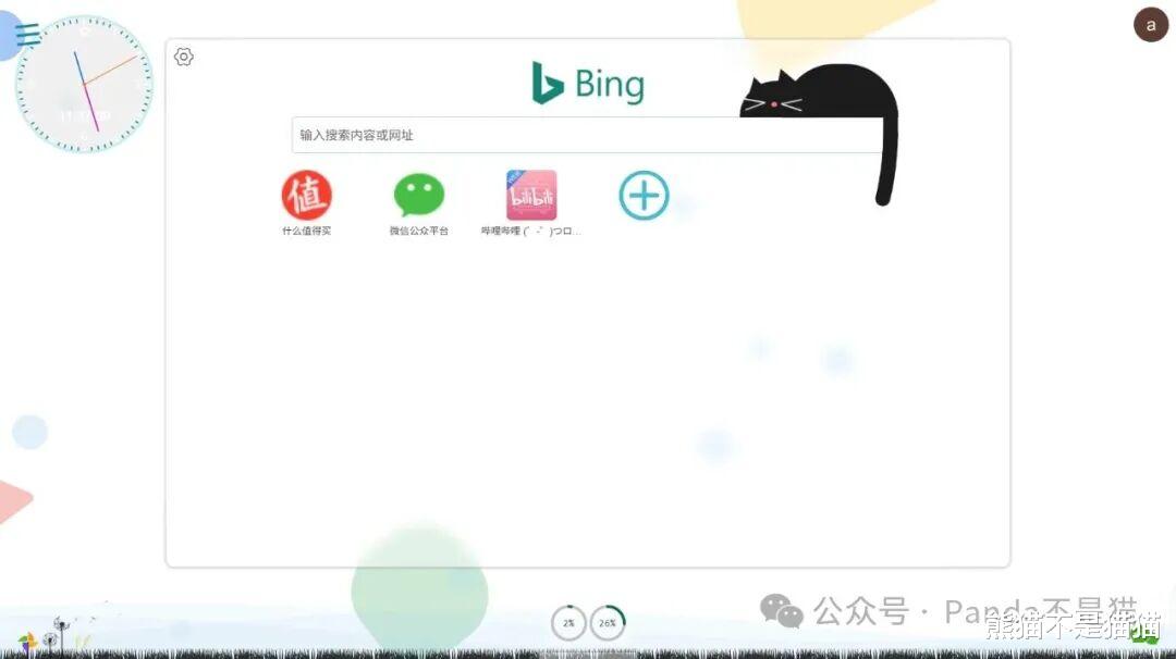 hello的主页非常干净,同时鼠标滑动与点击以及背景都带有动态效果,左上角能看到时钟,底部还有对应的CPU占用和内存占用情况,点击左下角的小风车可以更换壁纸,不过需要提前上传到壁纸库,右下角则是聊天室。