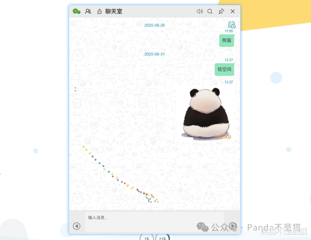 右下角聊天室模拟了微信的界面,不过功能相对就没这么多了,只能进行语音、文字以及文件。