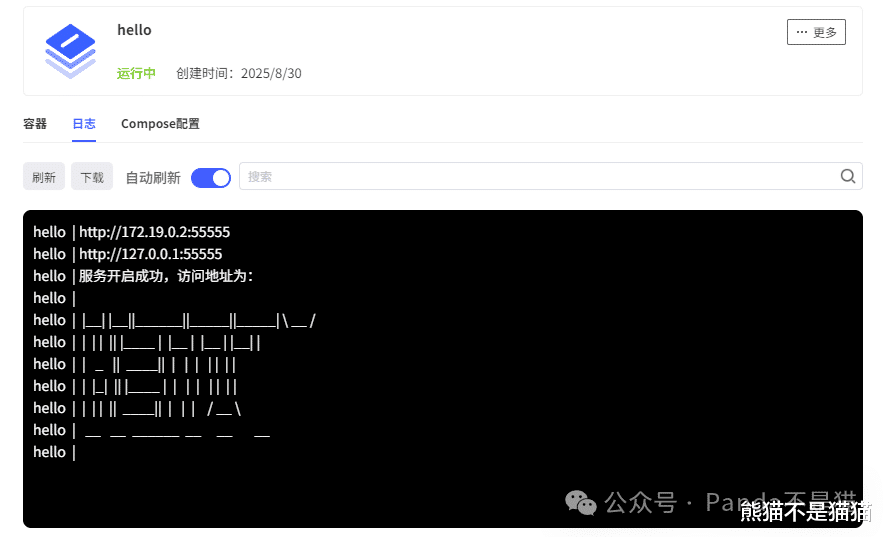 确认无误就可以拉取并创建容器了,最后在日志中看到这样的信息就代表项目启动成功了。项目使用