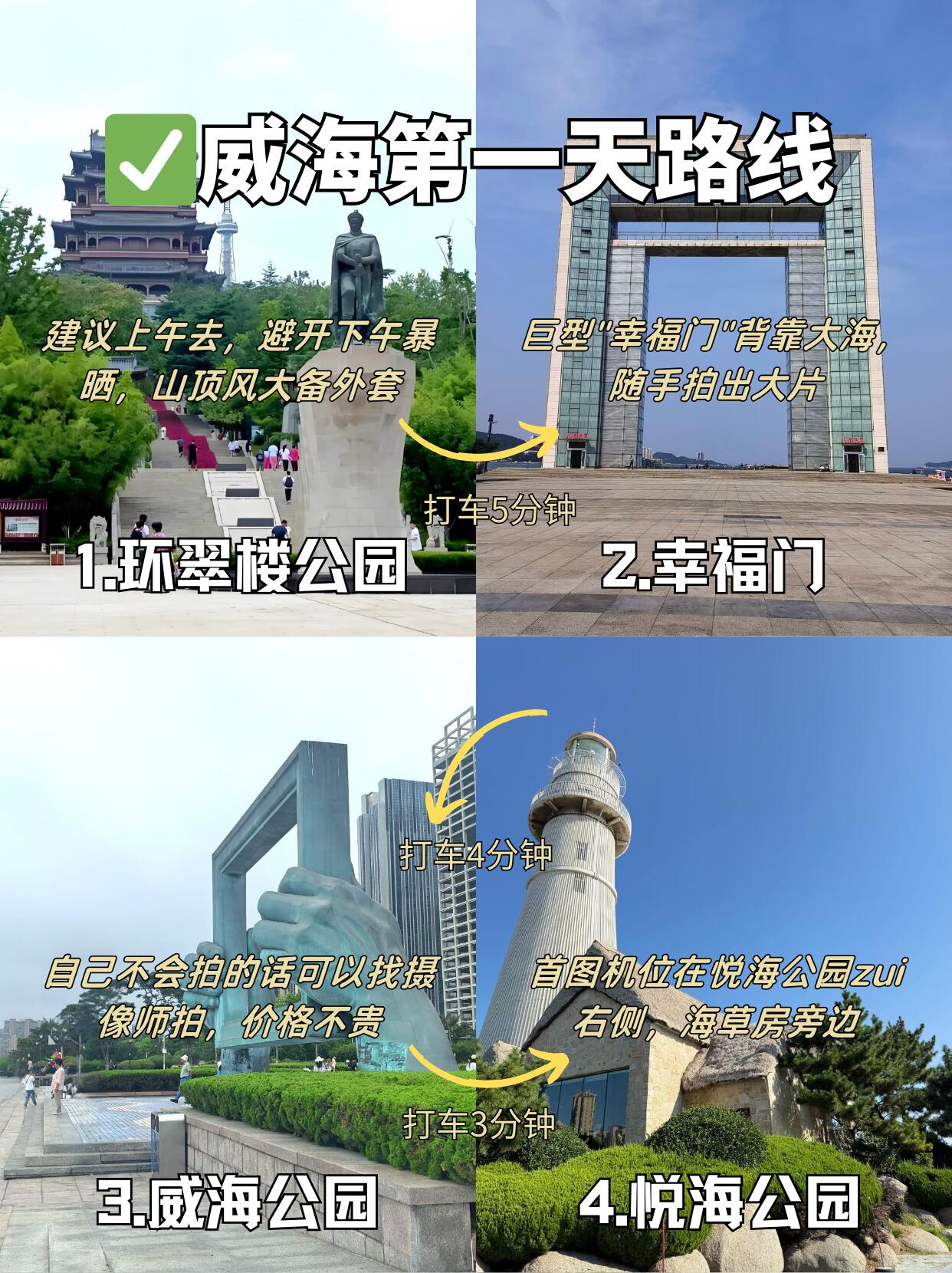 🔻第一天路线:环翠楼公园-幸福门-威海公园-悦海公园