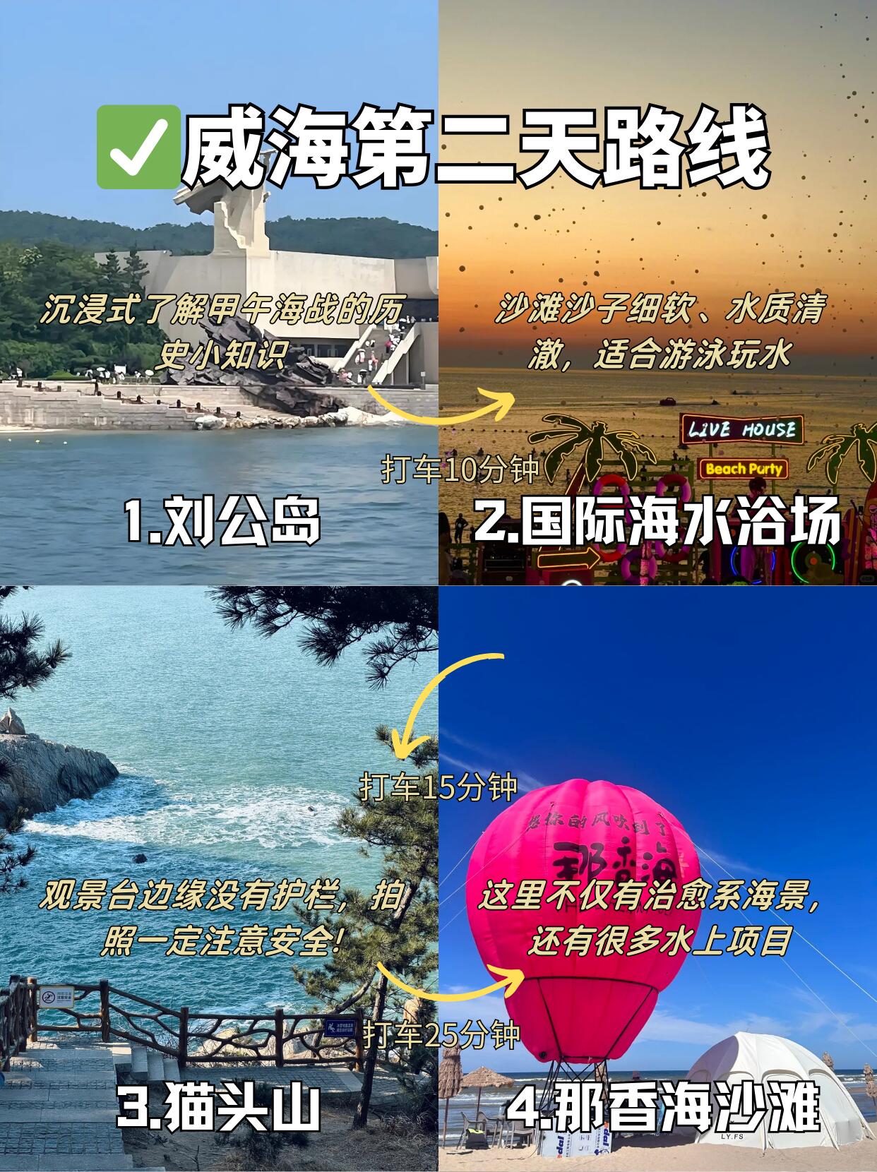 🔻第二天路线:刘公岛-国际海水浴场-猫头山-那香海沙滩