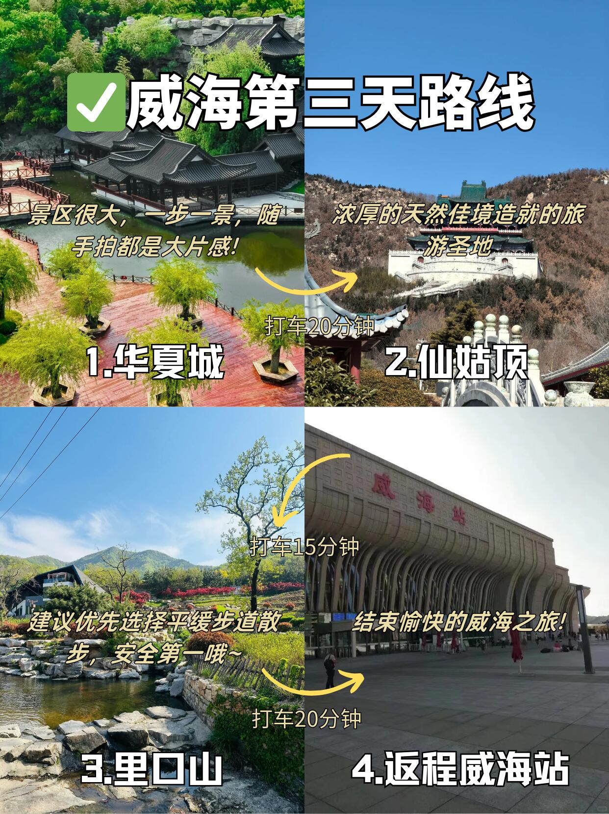 🔻第三天路线:华夏城-仙姑顶-里口山-威海站