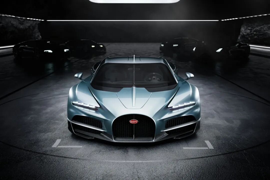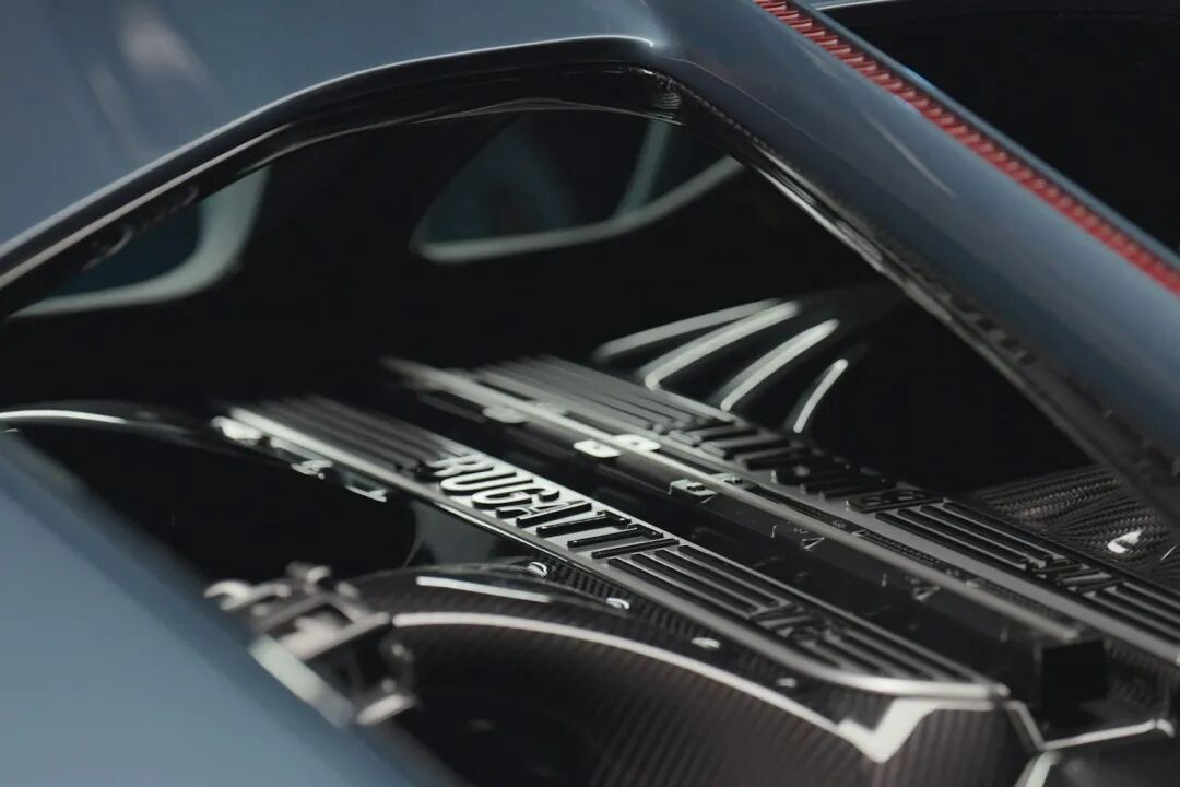 独特的布加迪线条,从A柱环绕座舱顶部,然后流畅地延伸至车头前端,形成了Schmid所描述的“一种向前飞跃的动感”。这条标志性的曲线强化并支撑着车的侧视图,使得每一处曲面都仿佛充满了动感,蓄势待发。沿着这条线的路径,它也界定了布加迪标志性双色车身涂装的分界线,这一签名式元素可追溯至品牌最早的创作。