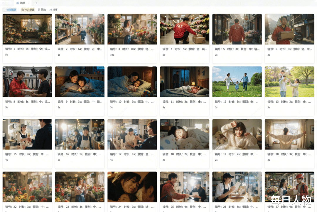 Leo跟同事用飞书的多维表格来制作分镜,让多维表格帮他判断和预估拍摄费用,以及从专业角度来分析分镜中近景、中景、远景的拍摄比例,给出更好的意见,“怎么组合镜头对观众来说更舒适”。除此之外,多维表格和一些AI工具结合起来,还可以生成具体的分镜画面、视频,甚至字幕。而这些,都是没有版权问题的。