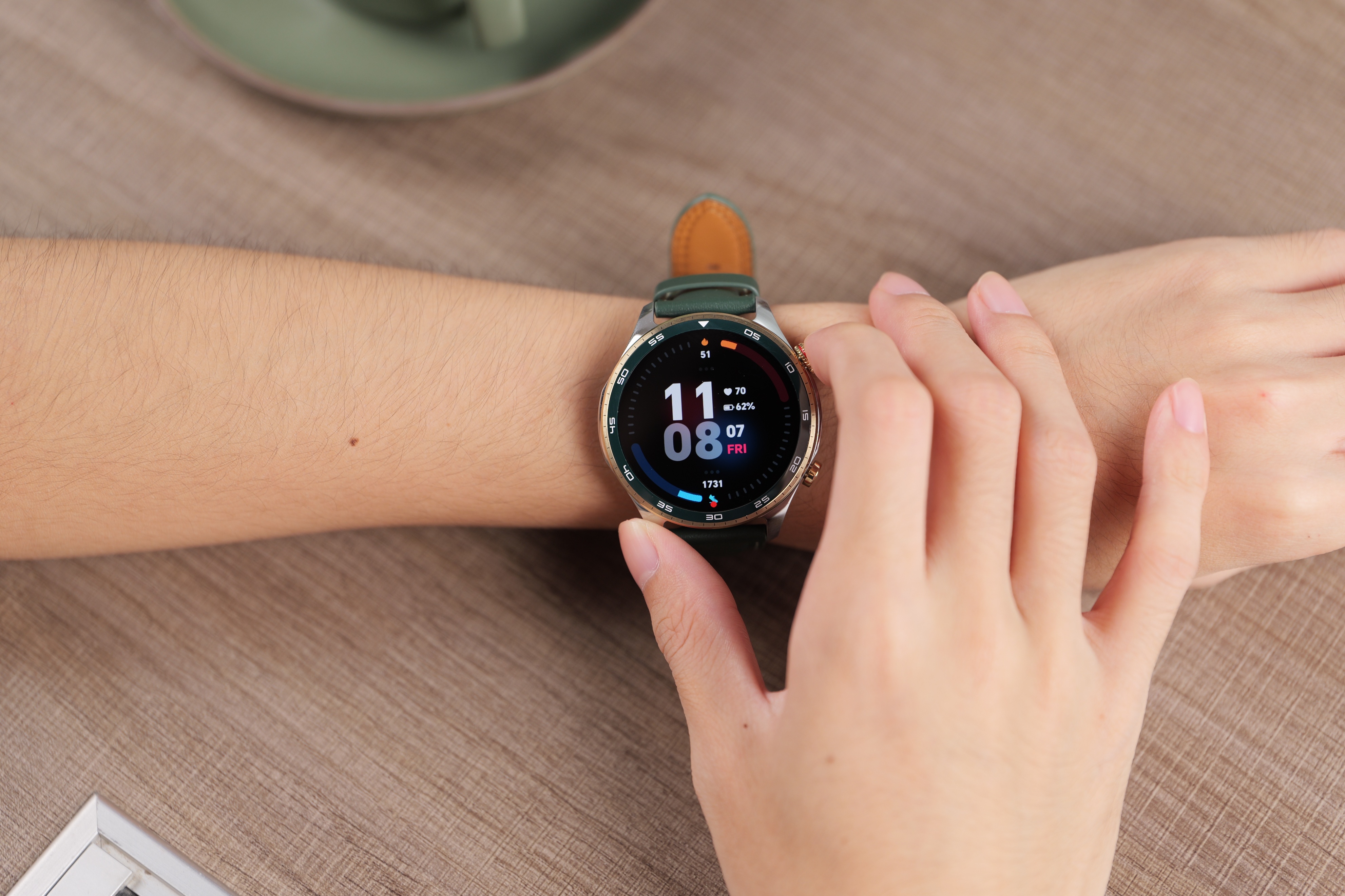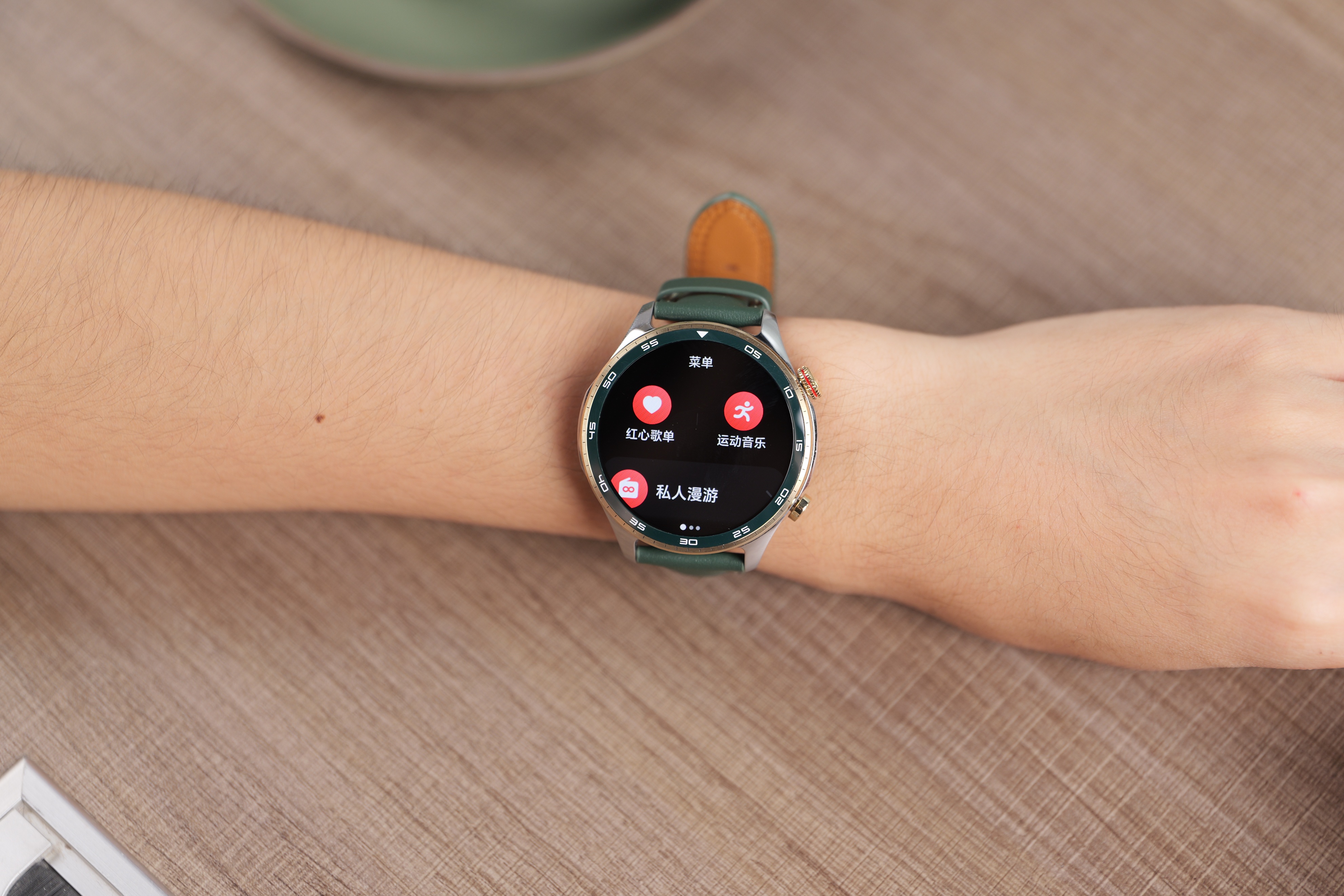日常用起来也很顺手,YOYO语音助手抬腕就能唤醒,查天气、定闹钟、找手机,一句话的事儿;AIGC表盘功能也好玩,上传一张风景照,就能生成专属表盘,搭配绿色表身,视觉效果特别和谐。有时候开会来不及记笔记,长按侧键打开AI语音笔记,录完后能同步到手机转成文本,重点信息一点都不落下,工作效率都高了不少。
