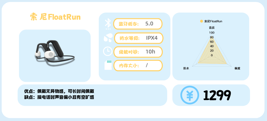 第七款:索尼(SONY)Float Run 开放式运动耳机