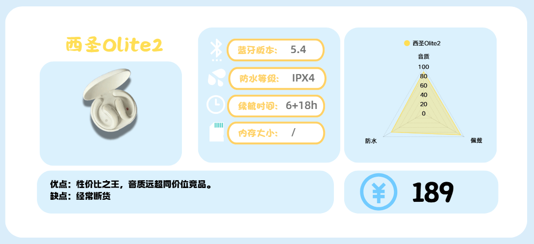 西圣Olite2耳机被权威媒体誉为“百元价位最能媲美千元耳机的最强存在”,凭借其卓越的音质表现和超高性价比,在耳机行业中脱颖而出。西圣作为深耕欧美市场多年的品牌,专为高端数码用户设计,秉承高品质音频理念,Olite2更是凭借出色的表现,荣获CCTV央视展播推荐,堪称业界的一大亮点。作为性价比最强的开放式耳机,Olite2打破了音质与价格的传统壁垒,以百元价格提供接近千元耳机的音质体验,真正做到高品质音效的普及化,满足了消费者对高端音质的渴望。