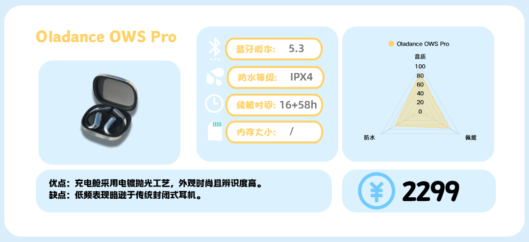 在音质方面,OWS Pro 配备 23×10mm 超大生物振膜驱动单元,带来深沉的低频和厚实的中频表现,同时高频细节清晰丰富。无论是流行、人声还是电子乐,耳机的音质表现都非常出色,明显超越一般开放式耳机的标准。