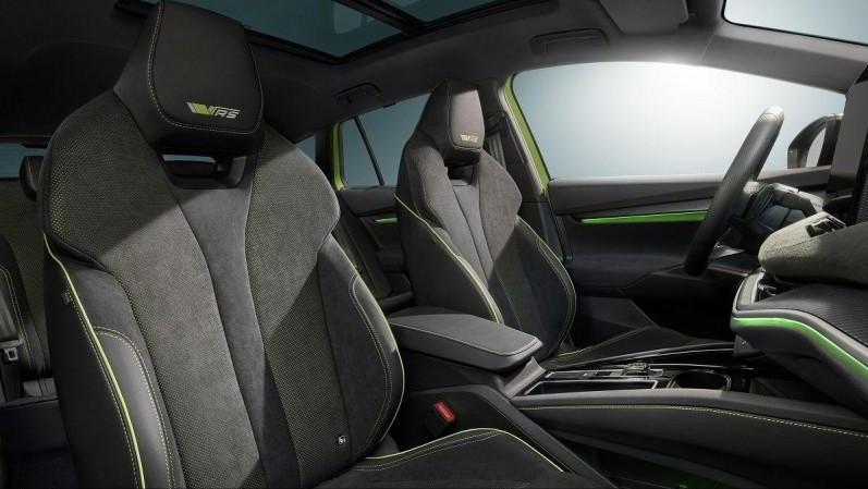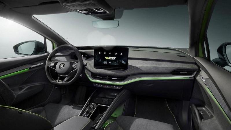 走进车内,全新斯柯达EnyaqiV车型同样延续了斯柯达Škoda一贯以来的设计搭配,同时车内大量采用羊毛、棕榈叶等可回收材料包覆,中控台上配备5.3英寸数位仪表,搭载13英寸多媒体触控屏幕,并且搭配Touch Slider数位触控面板,同时还拥有抬头显示、免钥匙进入、LED氛围灯及双区恒温空调等功能。而RS版车型还配备专属的运动桶型真皮座椅、黑色车顶、碳纤维仪表台与车门板装饰、彩色HUD抬头显示器、前/后座椅电热功能等多项配置,运功感更强。