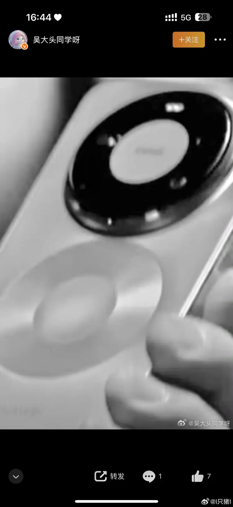 在“智慧皮卡丘”这条微博下,博主 @吴大头同学呀 转发了一位网友晒出的疑似华为Mate 80系列的真机谍照来询问博主,不过该博主并未明确该谍照的真伪,而是发了一个[good]的大拇指的表情。不过从照片上显示的这款机型来看与目前网间曝光的疑似该系列新机外观的渲染图大相径庭,反而更像是在Mate 40/Mate 60系列上加了一个磁吸环。