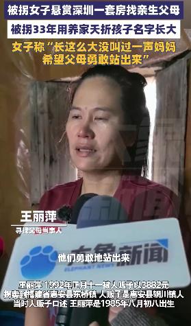 11月10日,广东深圳一名女子公开寻亲的消息引发关注。她在视频中介绍说,自己有一套平层,距此一百米还有一套复式楼,“只要当年我不是被父母遗弃的,家已经为他们准备好。”