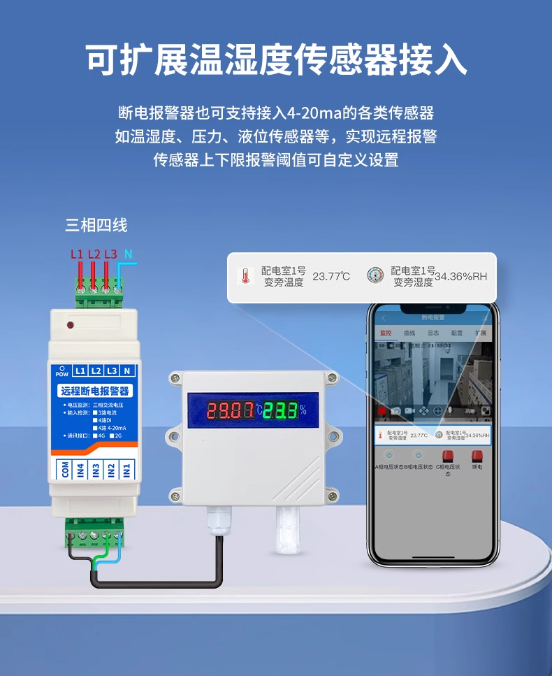 3. 多场景传感器扩展:支持外接温湿度传感器,可灵活拓展监测维度,适配冷库、机房、养殖场等多元场景需求。