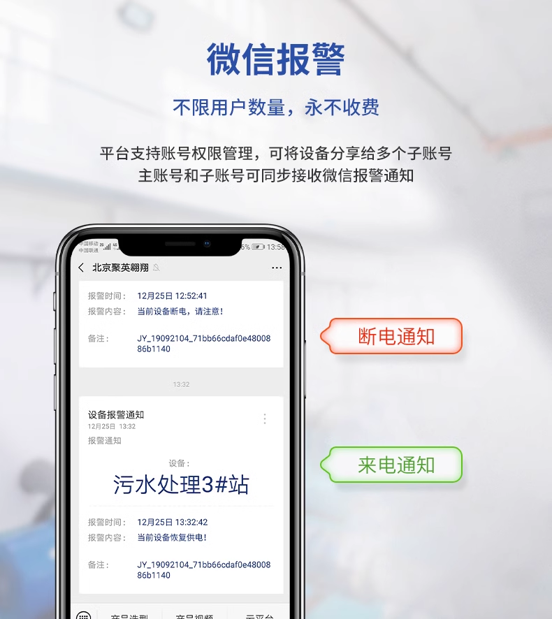 6. 多重远程通知机制:同步支持用户手机短信报警、微信消息推送,多渠道触达,杜绝告警信息遗漏。