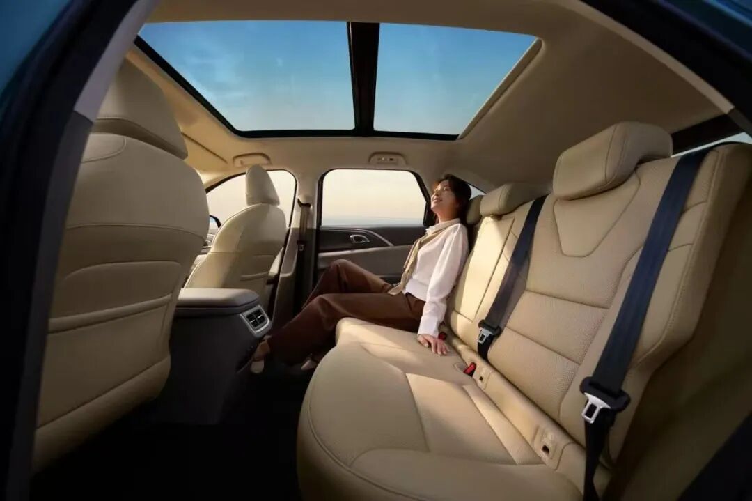 12.3英寸液晶仪表+10英寸HUD抬头显示+14.6英寸中控屏,怀挡设计,双辐平底方向盘带加热功能,64色氛围灯,前排座椅配备通风加热和8点按摩,后排靠背支持2档调节并可加热,27/32°两档靠背调节,后排可放平变成2米大床房。