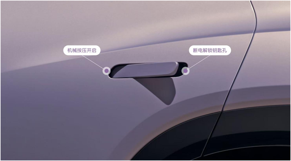 EO羿欧对于安全的考虑,也延伸到了车门这样的基础结构上。其双模隐藏式门把手为极端情况下的逃生和救援预留了充足的时间。该门把手同时具备“电动开启”和“手动按压”两种模式,在车辆断电、-40℃低温、车辆侧翻甚至涉水等情况下,仍可依靠机械链路直接解锁;在碰撞触发时,门把手还会自动弹出,从源头规避了部分隐藏式门把手因电控短路而无法打开的风险。此外,这款门把手还拥有100牛的电动破冰力,北方的用户从此不用担心车门被冻住影响出行。
