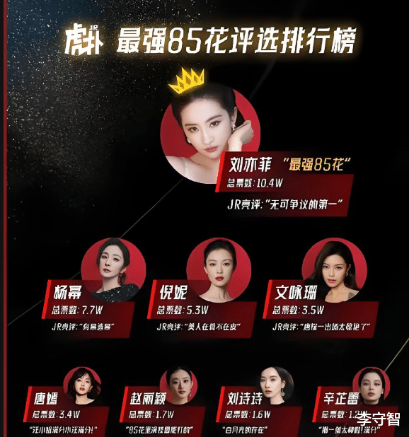 想起之前也很火的娱乐圈四小花旦,是美貌人气和演技实力兼具,而85花顶流们看似美貌人气兼具,也有不少热门作品,但演技平淡或者提升不够,总是被质疑吐槽,偏偏85后的女演员还很多,不少人表现都不错,看似低调,但作品质量不错,还拿大奖,这些顶流们自然要躺枪。