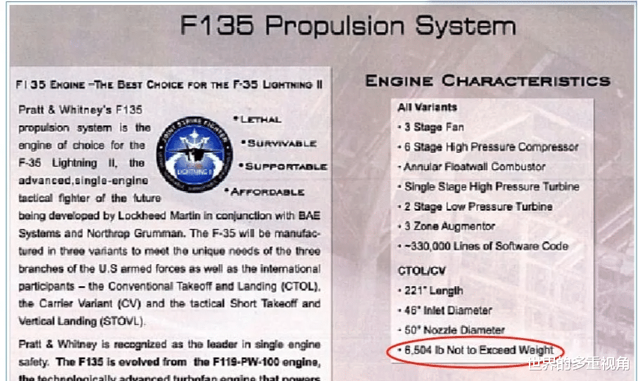 也就是说,美国并没有隐瞒F135真实的重量,很早就公开了。